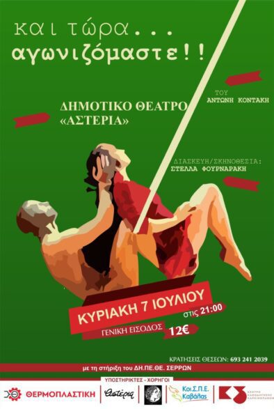 Την Παρασκευή 7.6.2024 στις 21.00 στο Δημοτικό Θέατρο Σερρών «Αστέρια» παρουσιάζεται  Θεατρική παράσταση «Και τώρα..? Αγωνιζόμαστε» του Αντώνη Κοντάκη σε σκηνοθεσία Στέλλας Φουρναράκη, σε συνεργασία με το ΔΗ.ΠΕ.ΘΕ. ΣΕΡΡΩΝ.