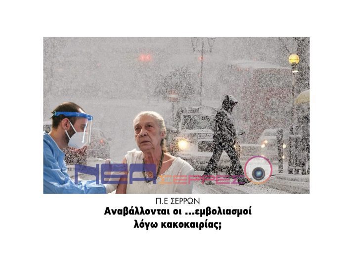Ξεκίνησε η κακοκαιρία στο Νομό Σερρών με την Μήδεια και όλοι αναρωτιούνται πώς και αν θα συνεχιστούν οι …εμβολιασμοί για την αντιμετώπιση του Κορονοϊού Συγκεκριμένα εν αναμονή της κακοκαιρίας «Μήδειας» που αναμένεται να χτυπήσει σήμερα το νομό Σερρών, με μεγάλη πτώση της θερμοκρασίας και πυκνές χιονοπτώσεις, βρίσκεται η περιφερειακή ενότητα Σερρών. Όλες οι υπηρεσίες είναι … Συνεχίστε να διαβάζετε το ΜΗΔΕΙΑ: Ξεκίνησε η κακοκαιρία Αναβάλλονται οι …εμβολιασμοί;.