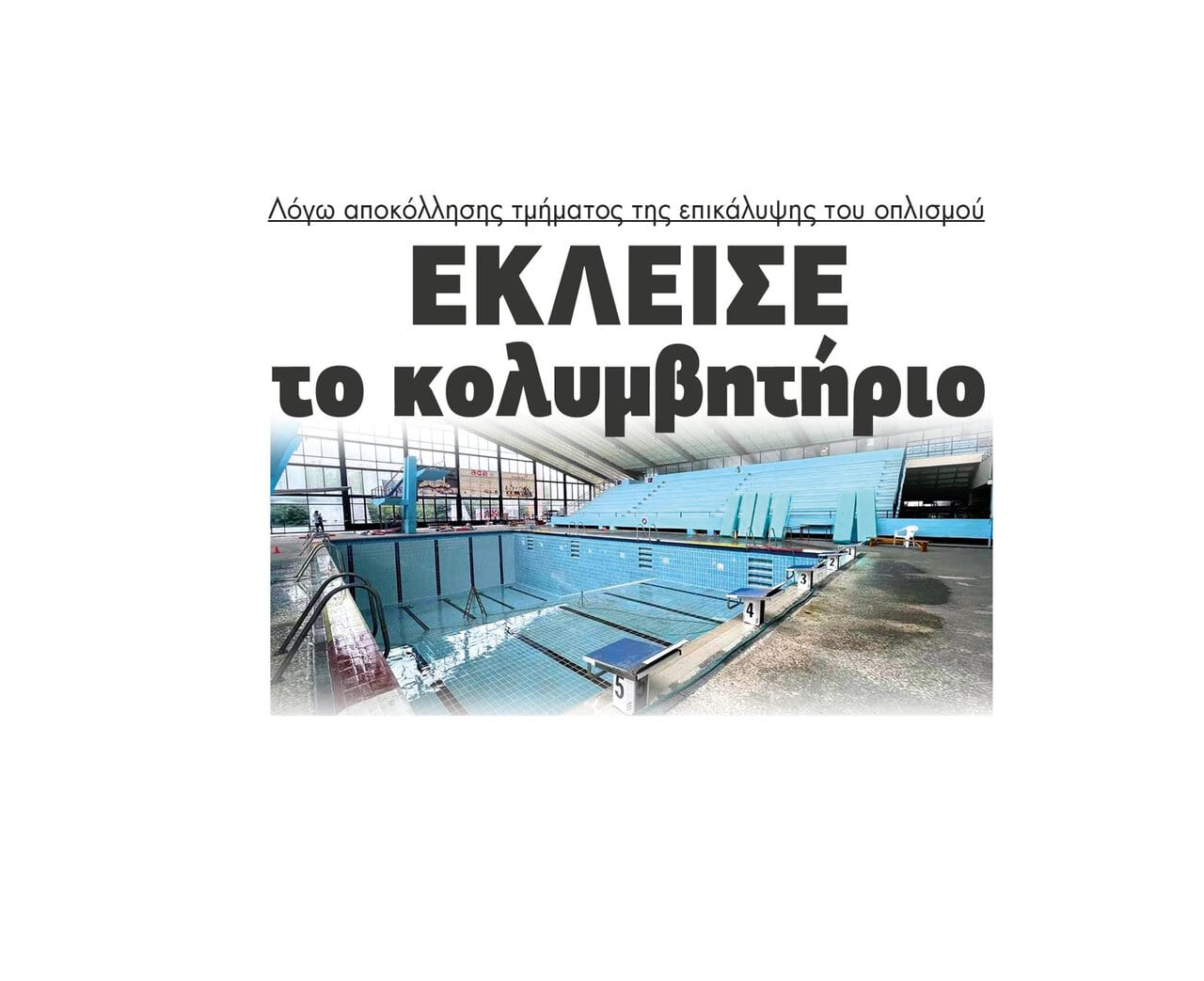 Έκλεισε το κολυμβητήριο Σερρών λόγω αποκόλλησης τμήματος της επικάλυψης του οπλισμού
