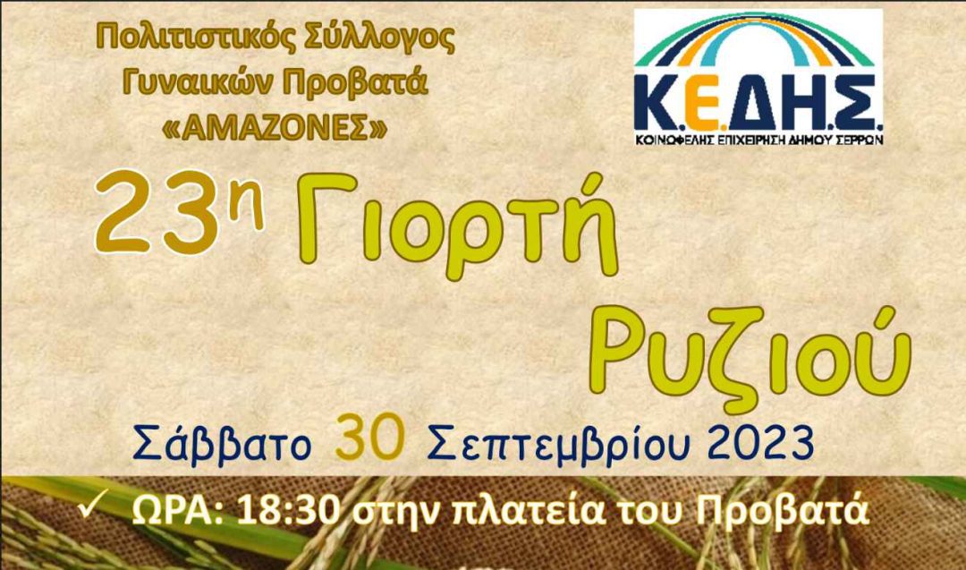 Η 23η Γιορτή Ρυζιού στον Προβατά θα πραγματοποιηθεί από τον Πολιτιστικό Σύλλογο Γυναικών «Αμαζόνες» – Κ.Ε.ΔΗ.Σ. το Σάββατο 30 Σεπτεμβρίου 2023