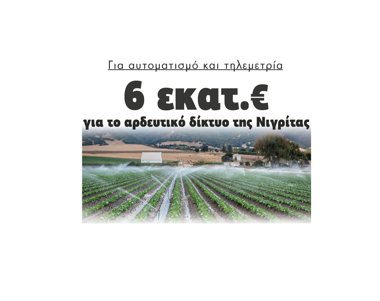 6.000.000 ευρώ για το αρδευτικό δίκτυο ΤΟΕΒ Νιγρίτας για αυτοματισμό και...